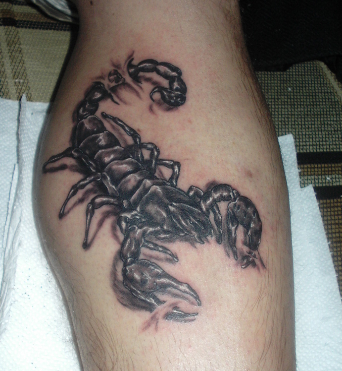 Для создания трехмерного изображения тату мастера используют определенные технологии и смесь красок — преимущественно черных или темно-синих. В этом случае скорпион получается весьма натуральный, интригующий, слегка пугающий своей реалистичностью. А ведь Вы именно этого и хотели, не правда ли?